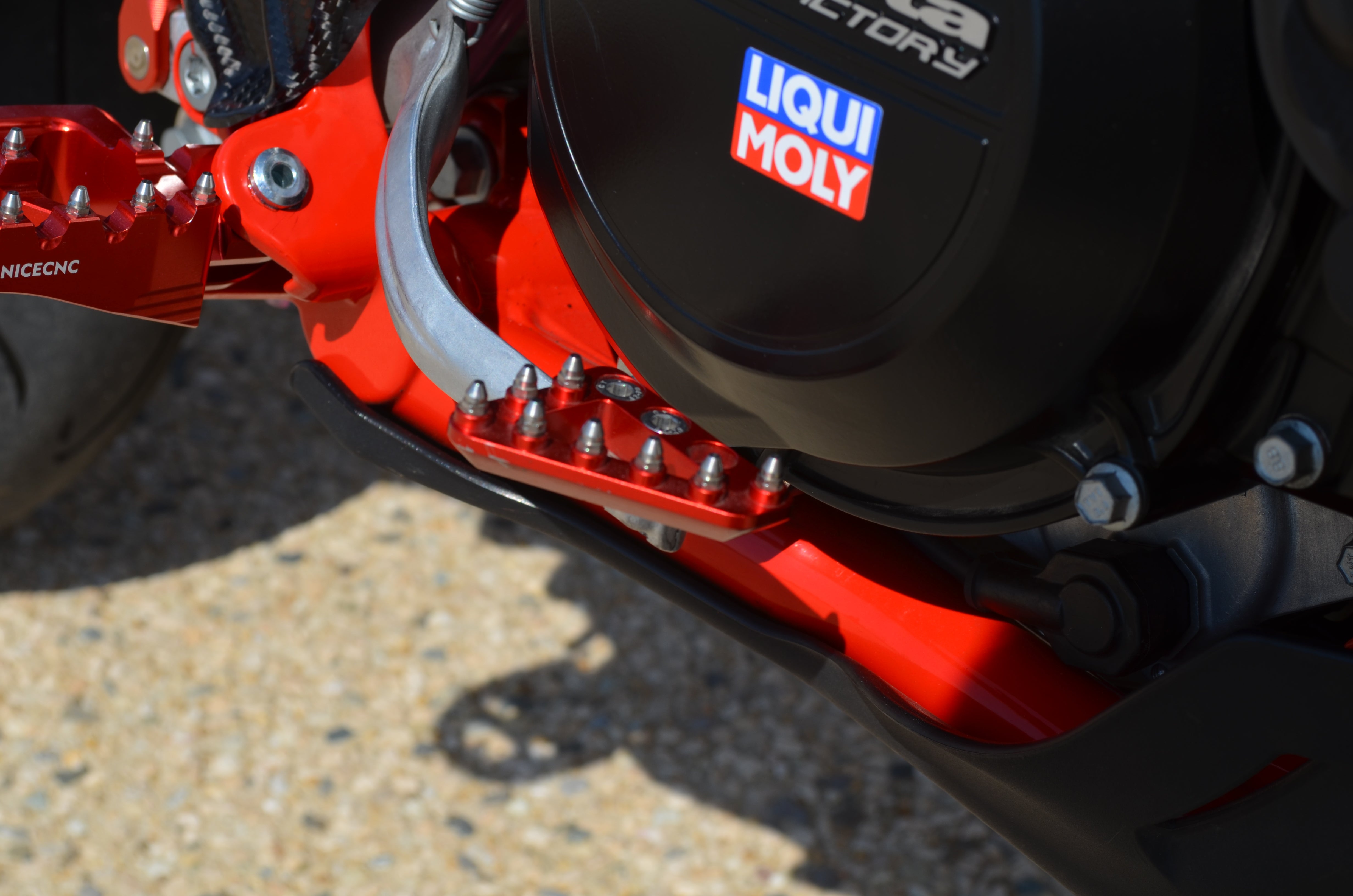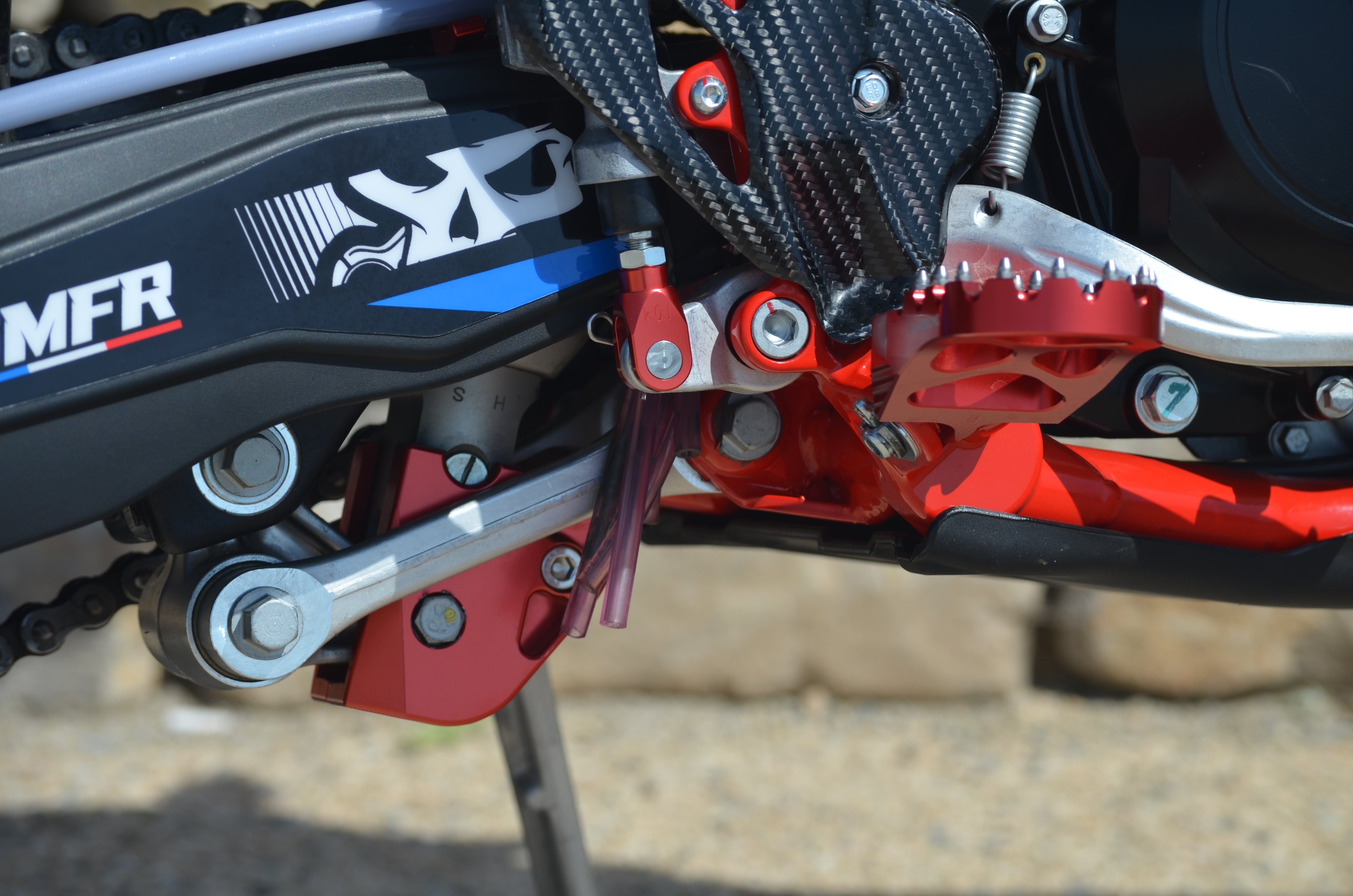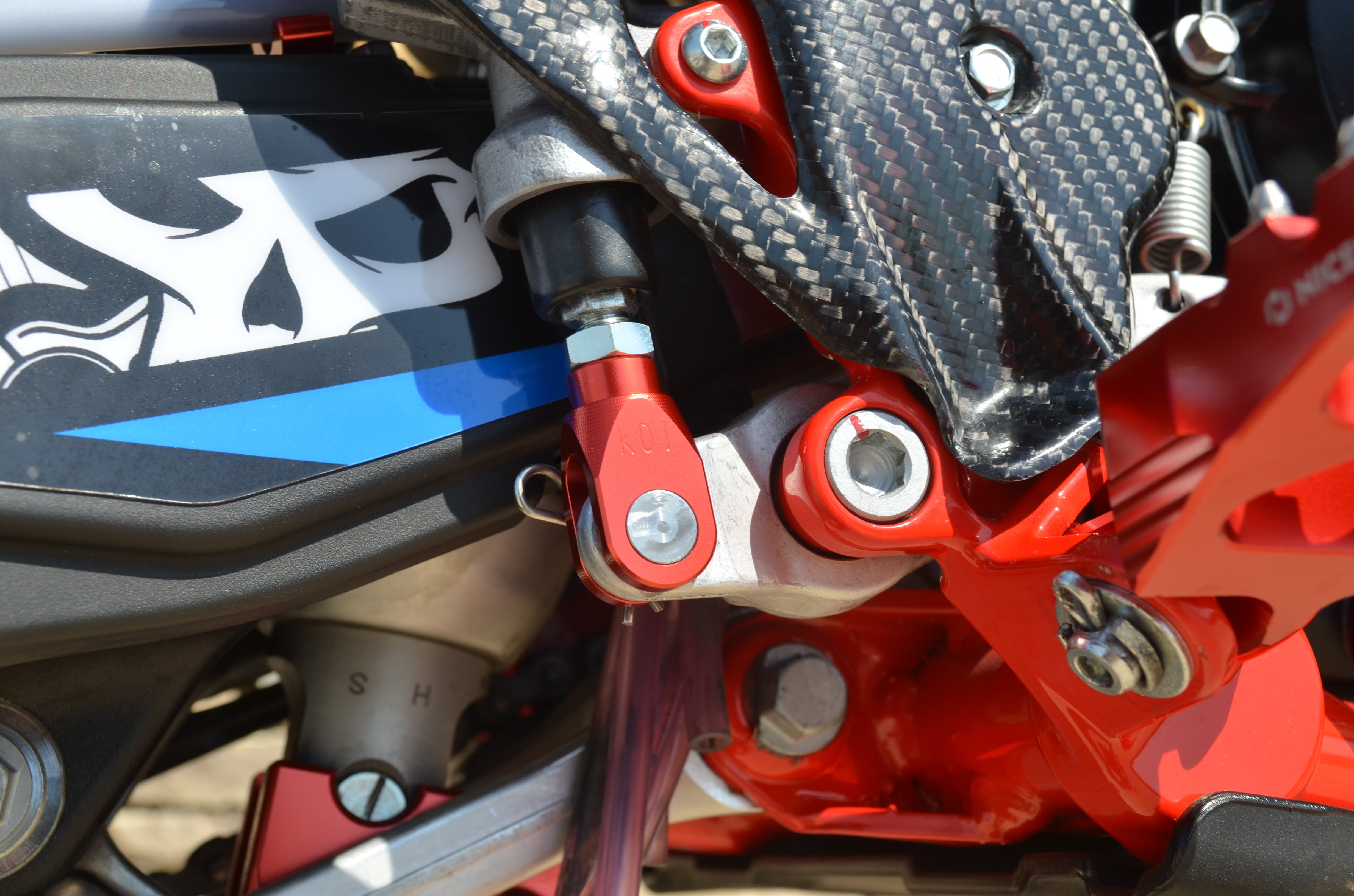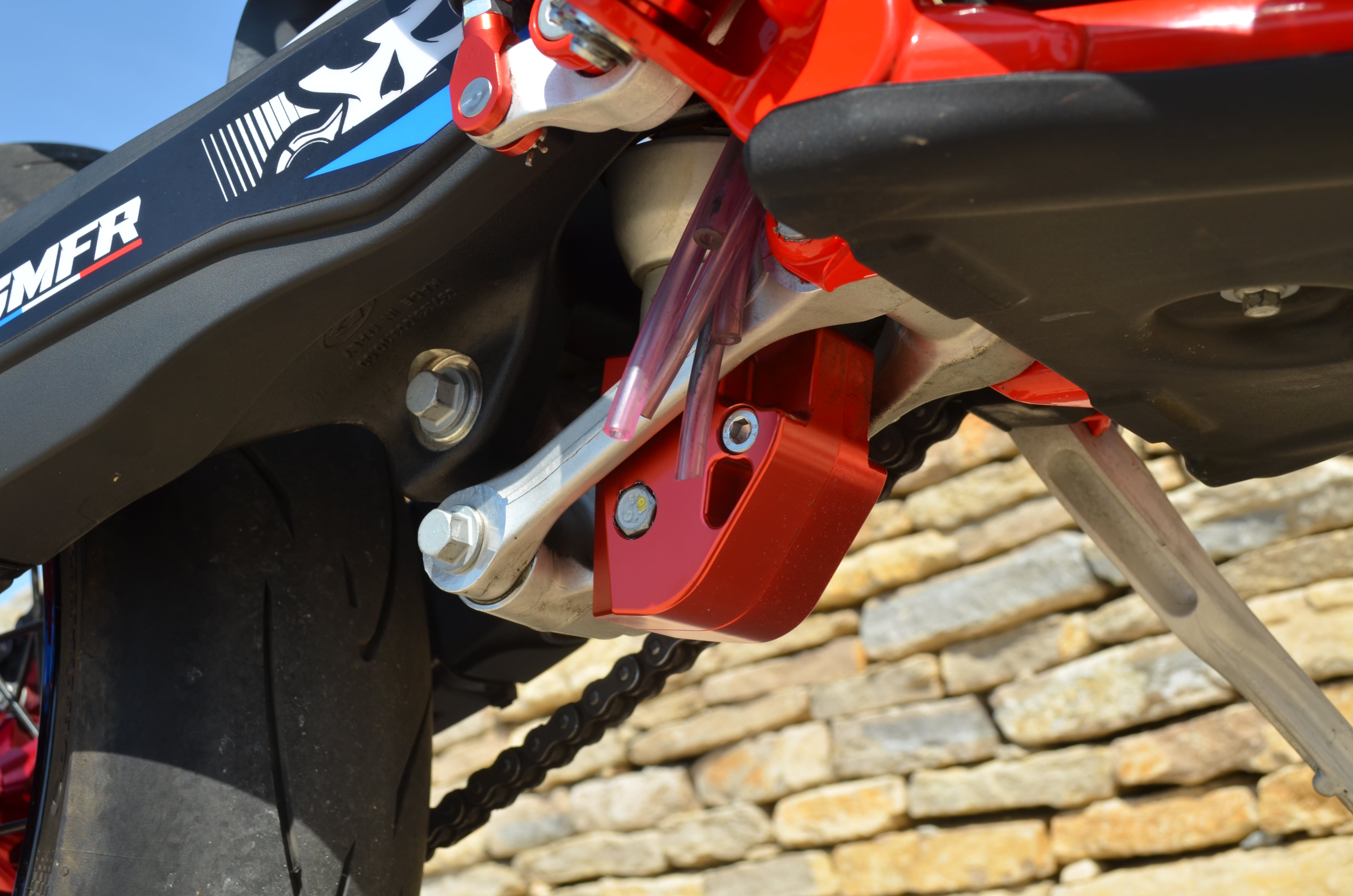 The linkage guard is a new concept in protection guards for the shock clevis and shock linkage from rock damage, it enables the bike to glide over logs and boulders. If without the Link Guard the shock clevis will catch on logs and stop the bike or throw the rider forward. Because the clevis and linkage extend well below the swingarm it is very susceptible to expensive damage.