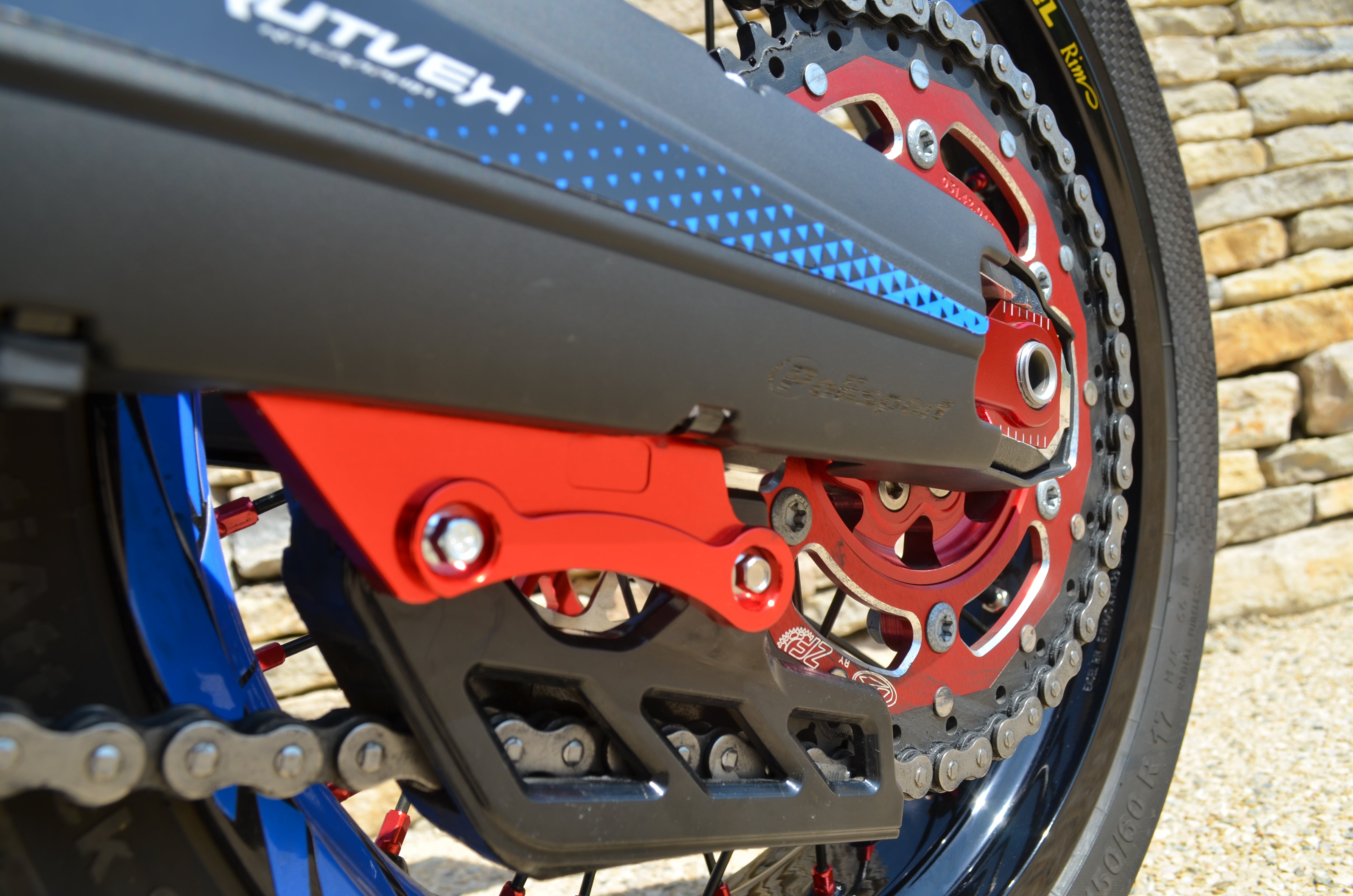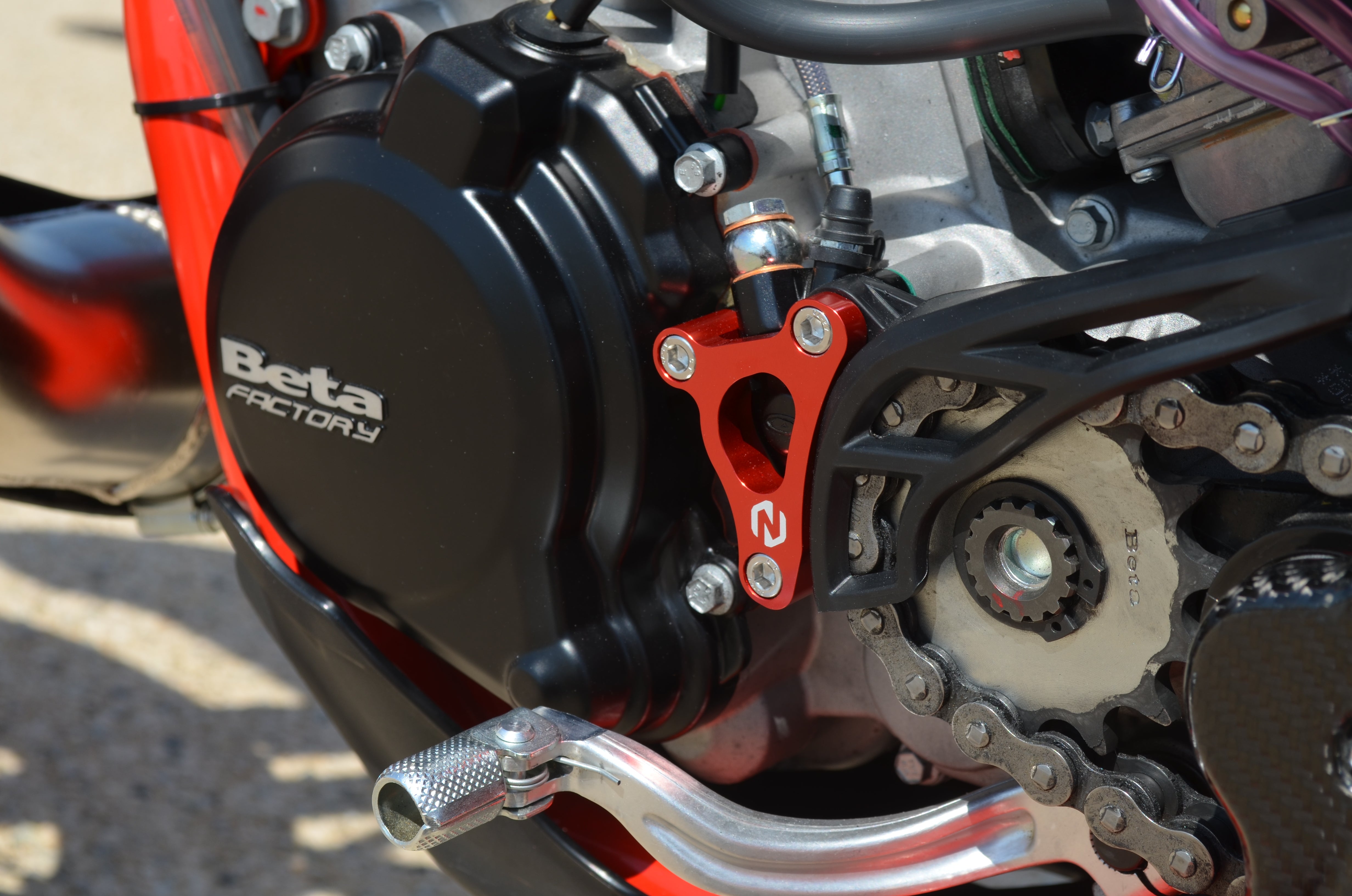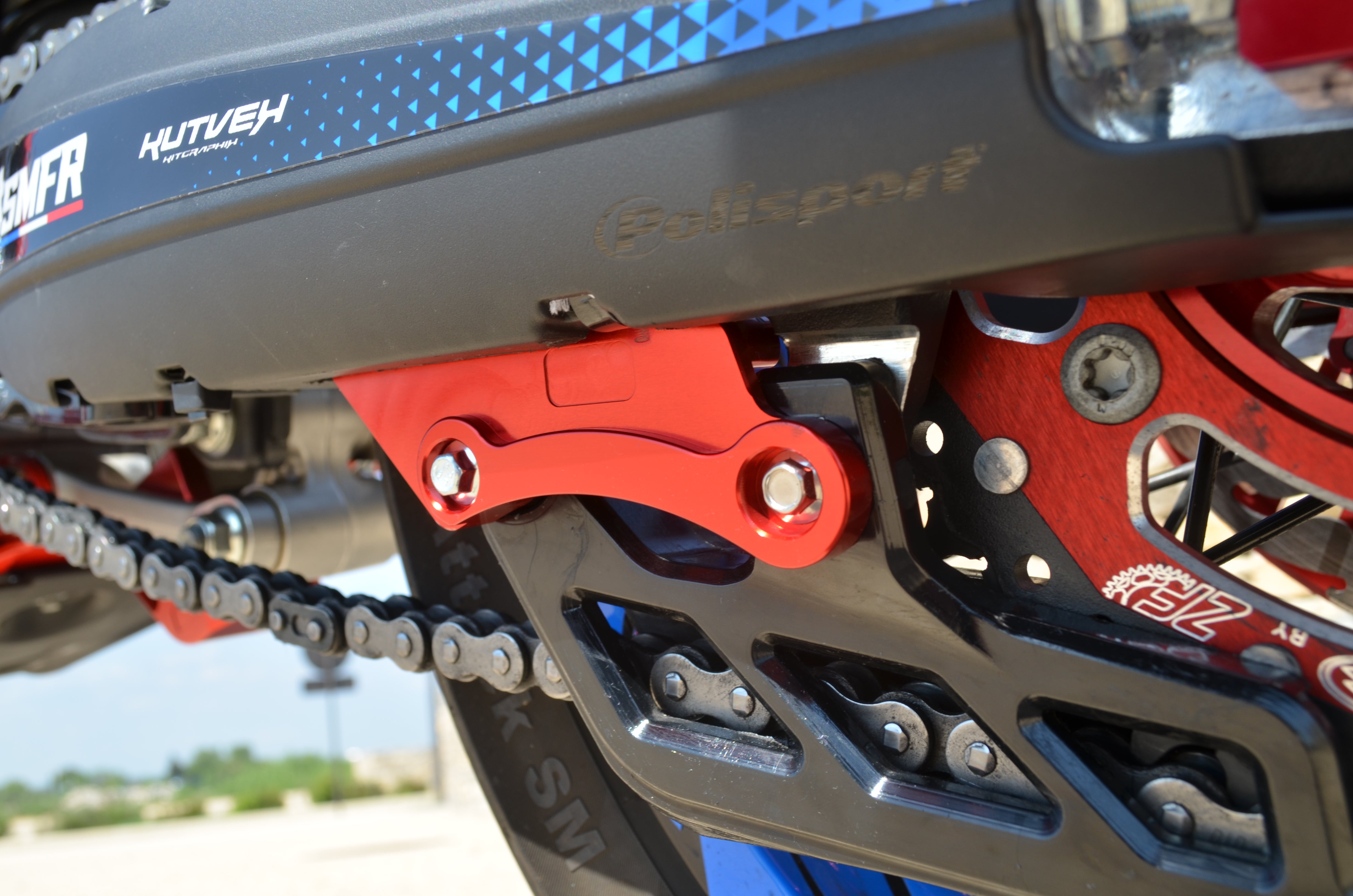 The swingarm guard prevents chain guide tabs from becoming damaged during the contact with rocks, roots and other trail debris.