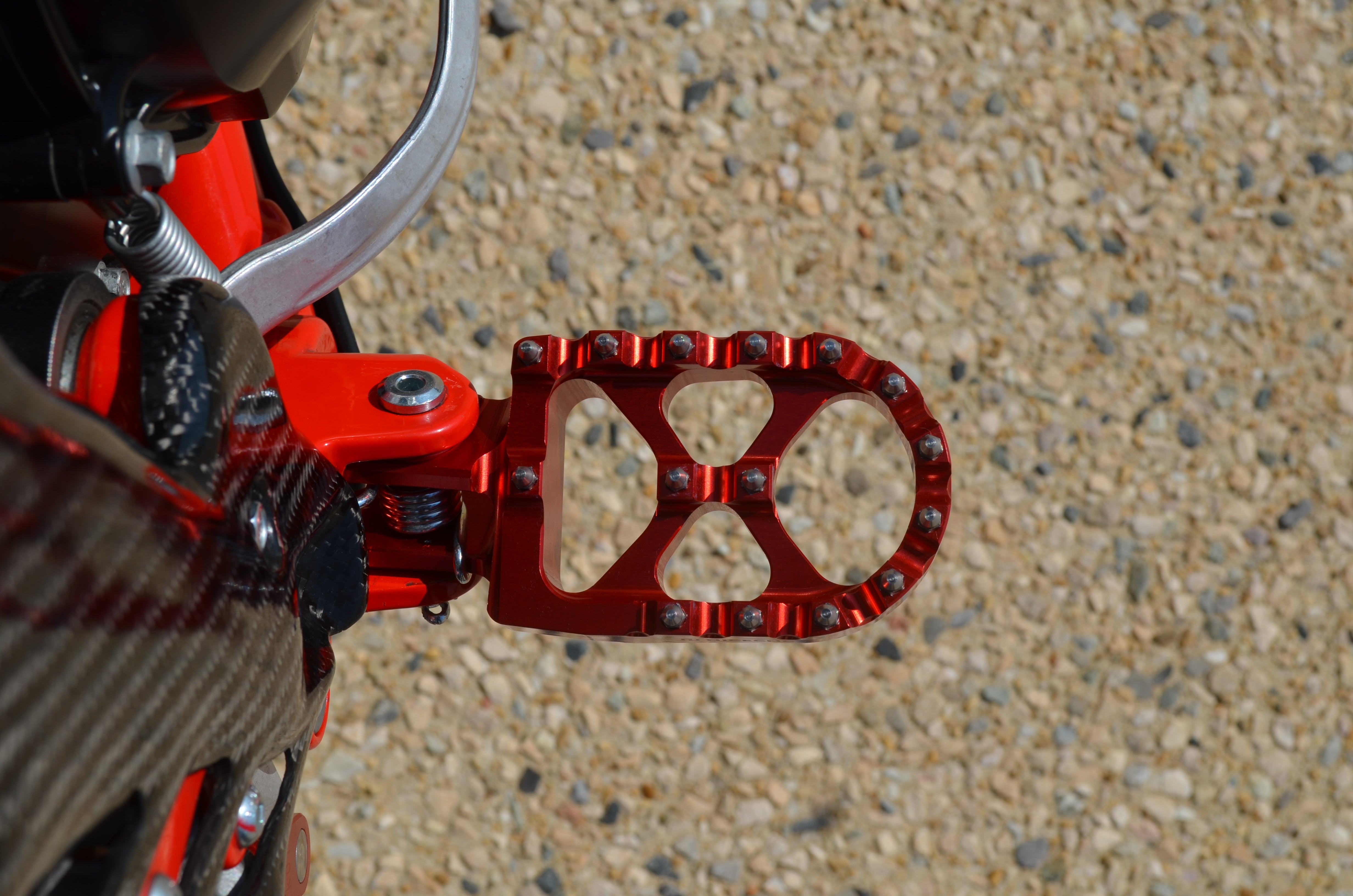 The sharp teeth of foot pegs are made from hardened steel, it is removable and replaceable and provides strong grip on your boots. Besides, they make you attractive in the motocross and shiny on the road.