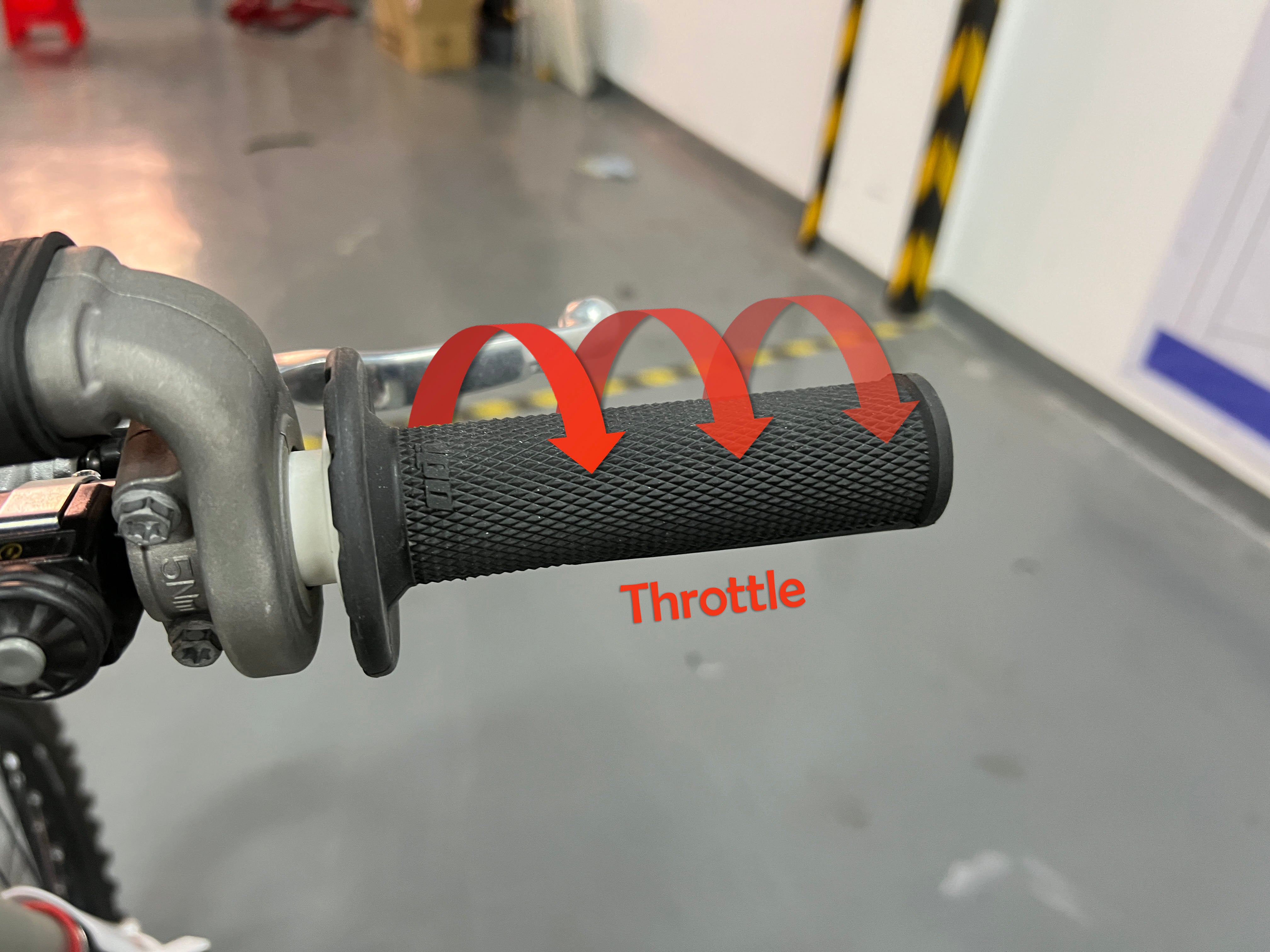 There are 7 primary controls on motorcycles we should know before you ride it: motorcycle start button, throttle, front brake lever, rear brake lever, clutch lever, shift lever and turn-off switch. I will show them on a KTM 350 EXCF, don't worry, the controls are universal for most bikes.