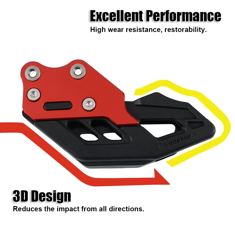 - Chain guide composed of TPU, excellent in wear resistance and restorability and duralumin plate with CNC processing.