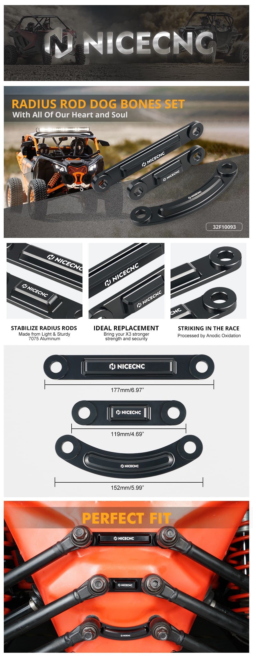 UTV Thickened Radius Rod Dog Bones Race Plates Kit For Can-Am X3
