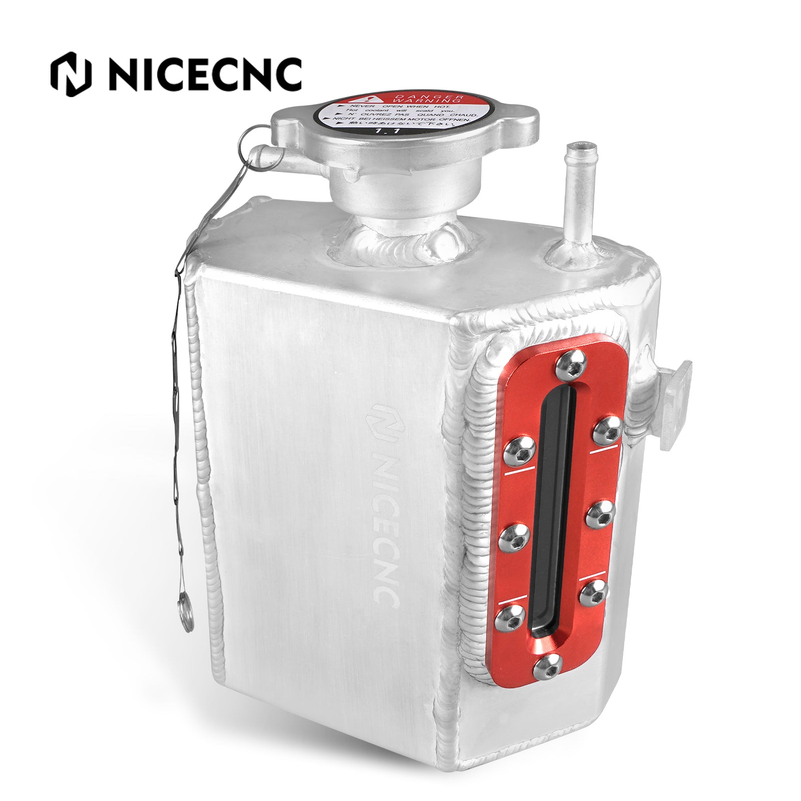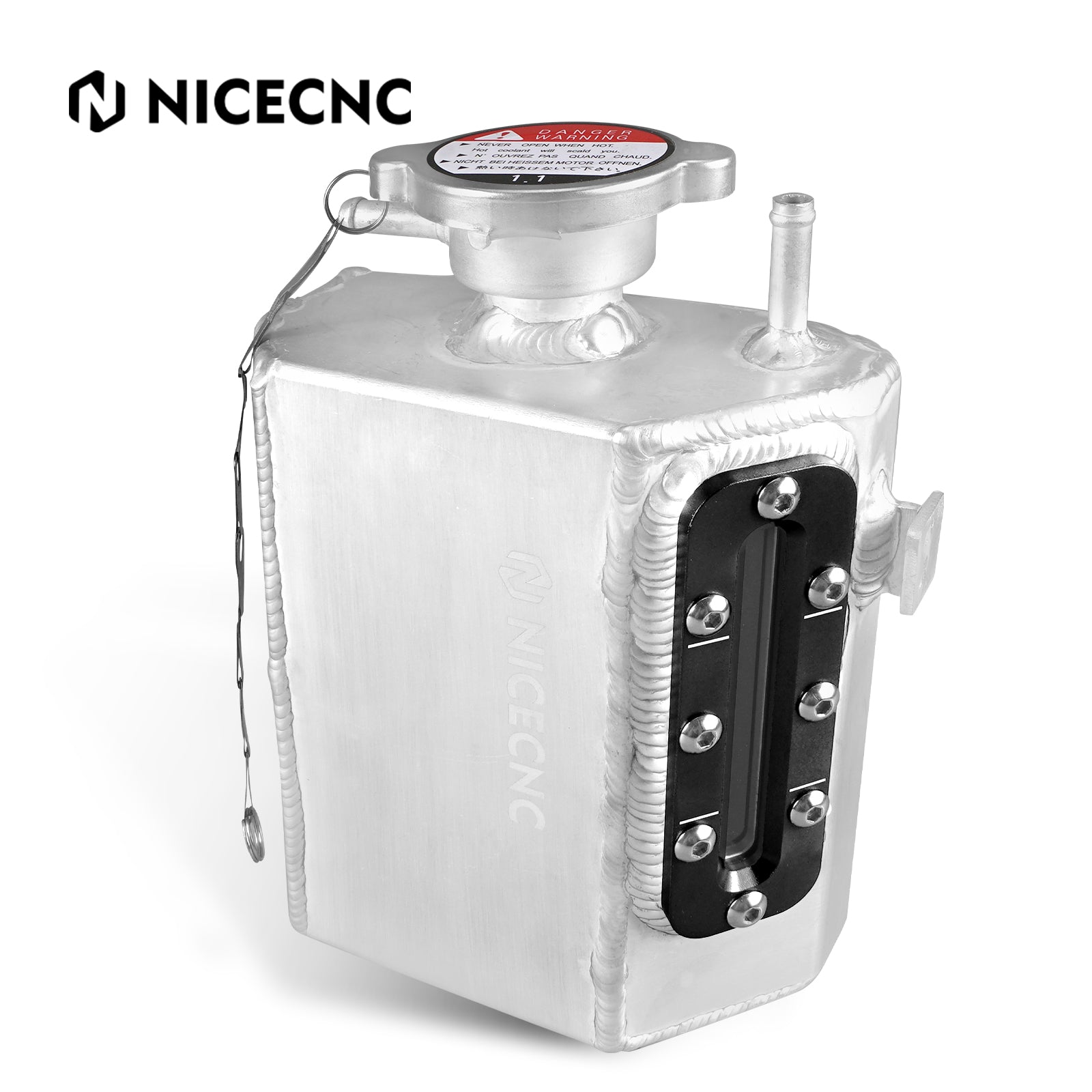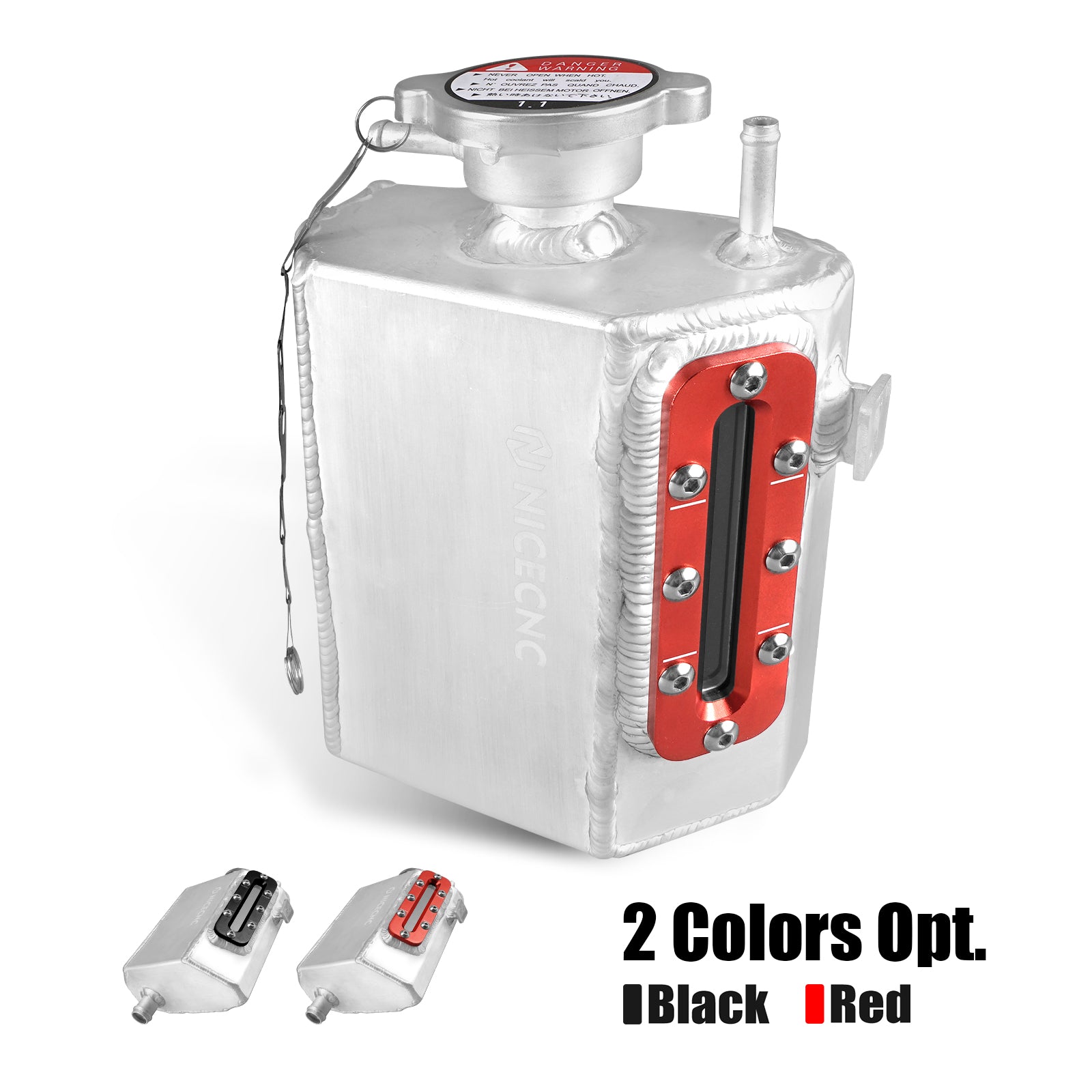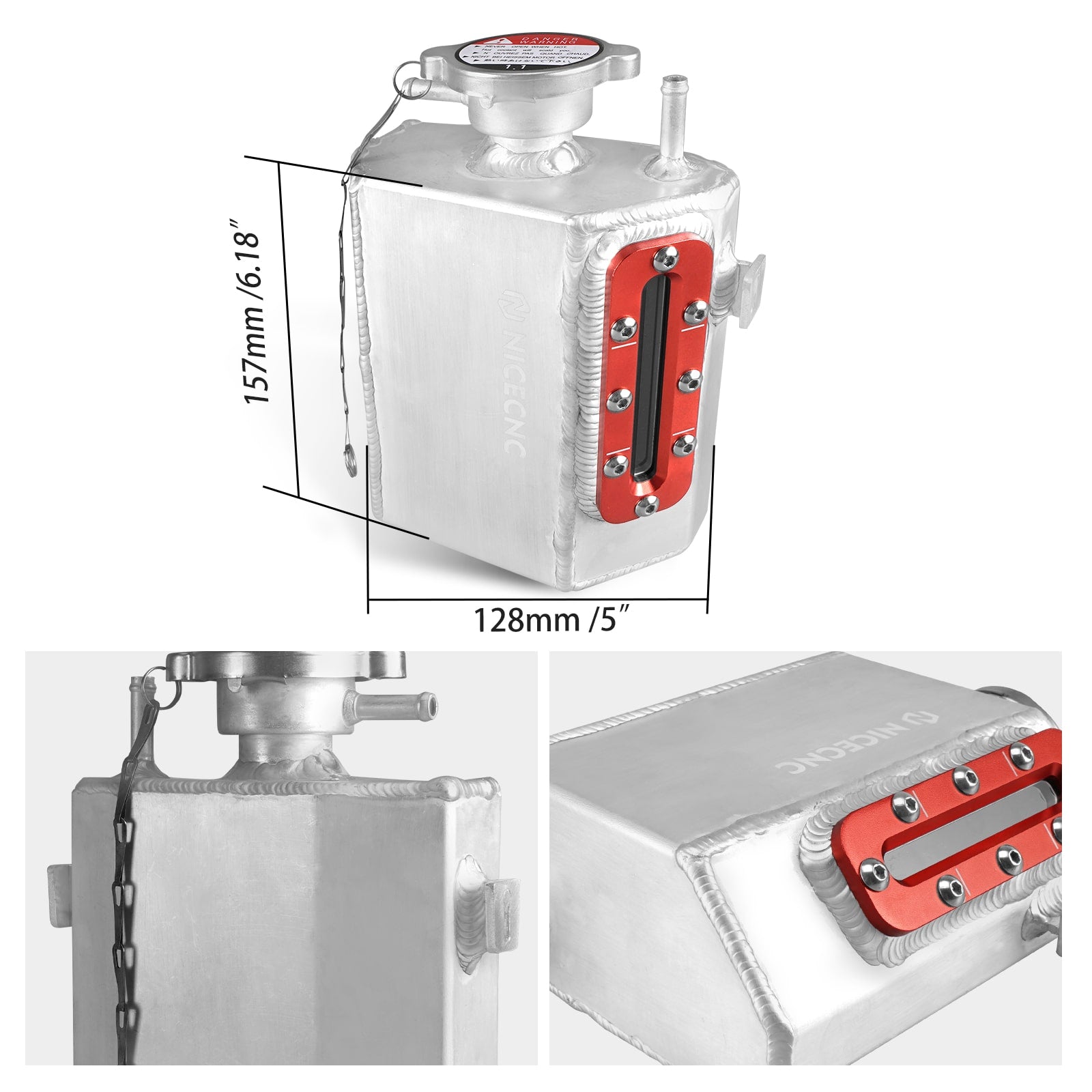 Premium Aluminum Construction - Upgrade from brittle plastic to a durable, lightweight aluminum tank. Coolant reservoir tank has a capacity of 1.2 liters (1.27 quarts).