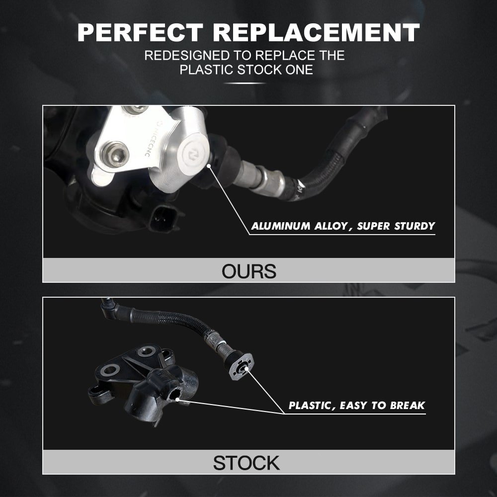 - Features a redesigned billet aluminum Fuel injector rail designed to replace the Plastic Stock one.