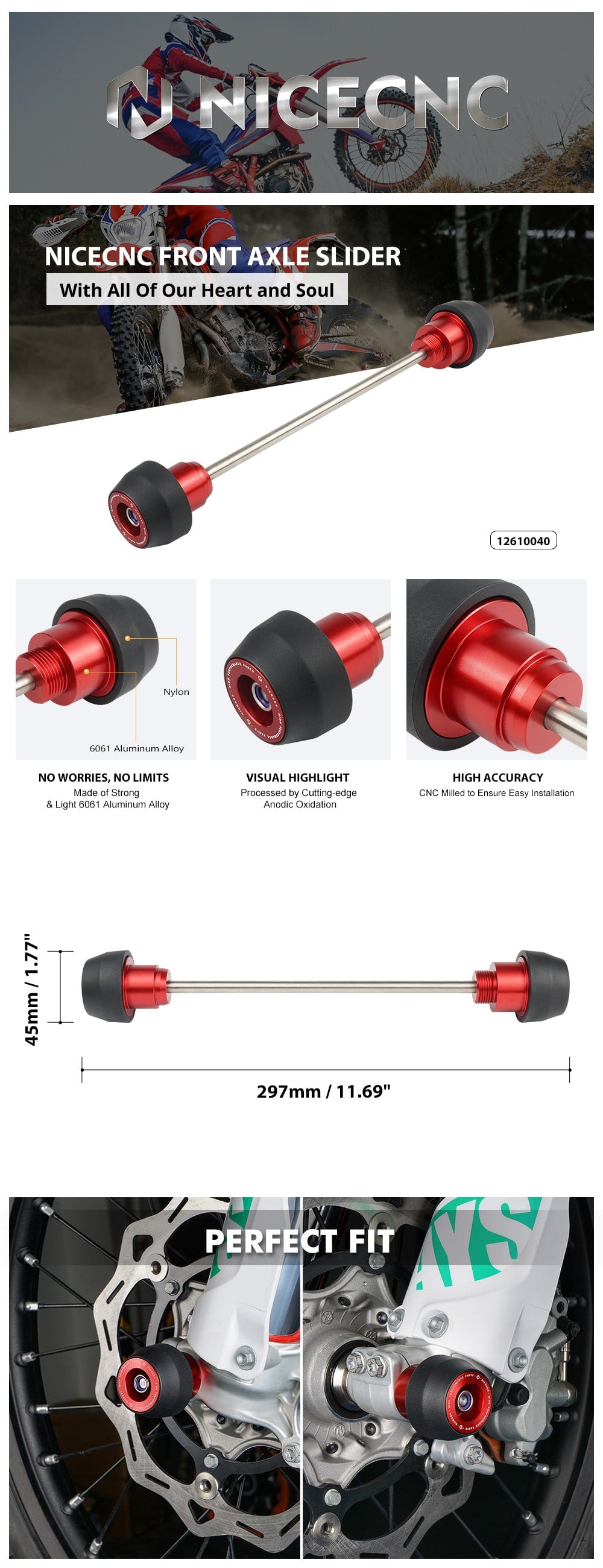 - 【Protect Your Fork】Made of strong and light 6061 aluminum alloy and nylon, absolutely effective to protect your expensive forks and brake calipers in the event of a fall or collision. No worries, no limits on the race track. This practical addition to your front axle can significantly reduce maintenance costs.
