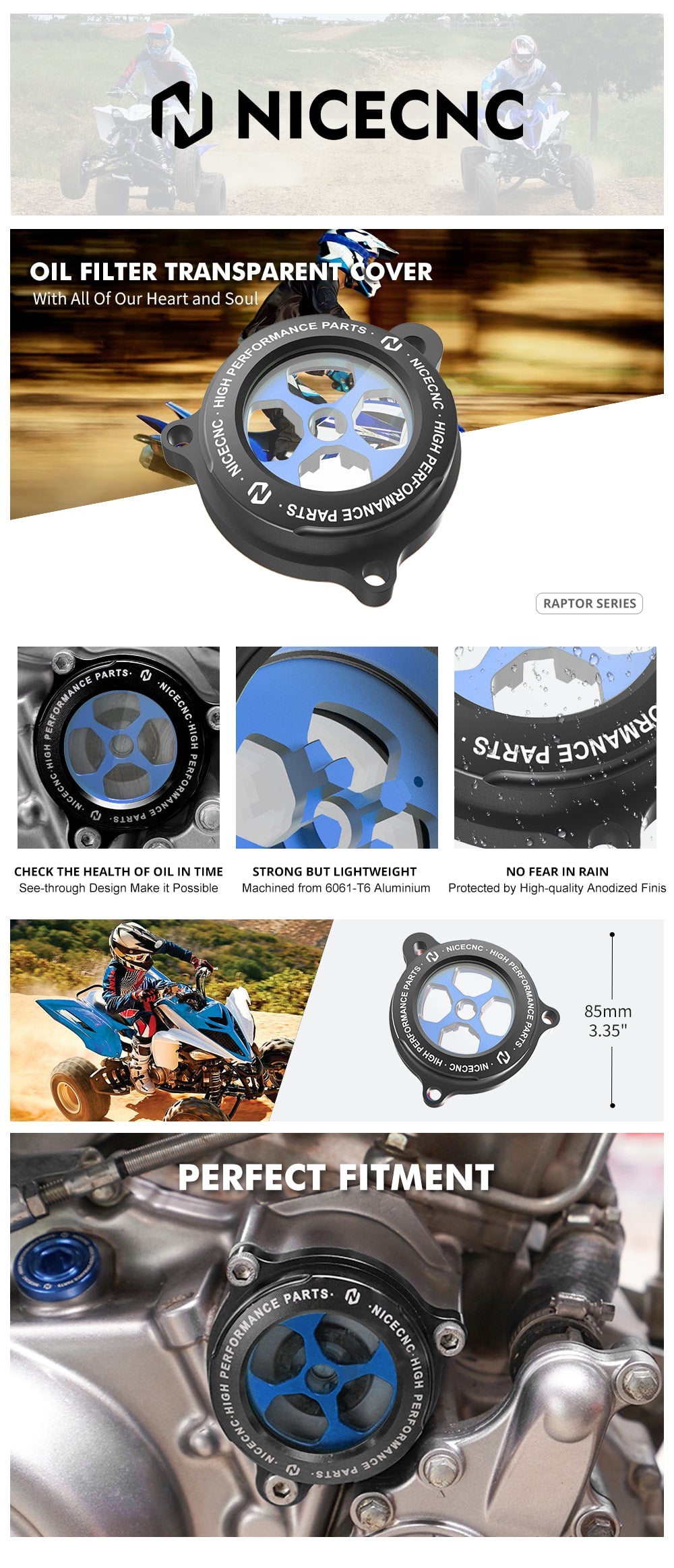 Oil Filter Cover Cap w/Observing Window For Yamaha Raptor 700 700R 2006-2024