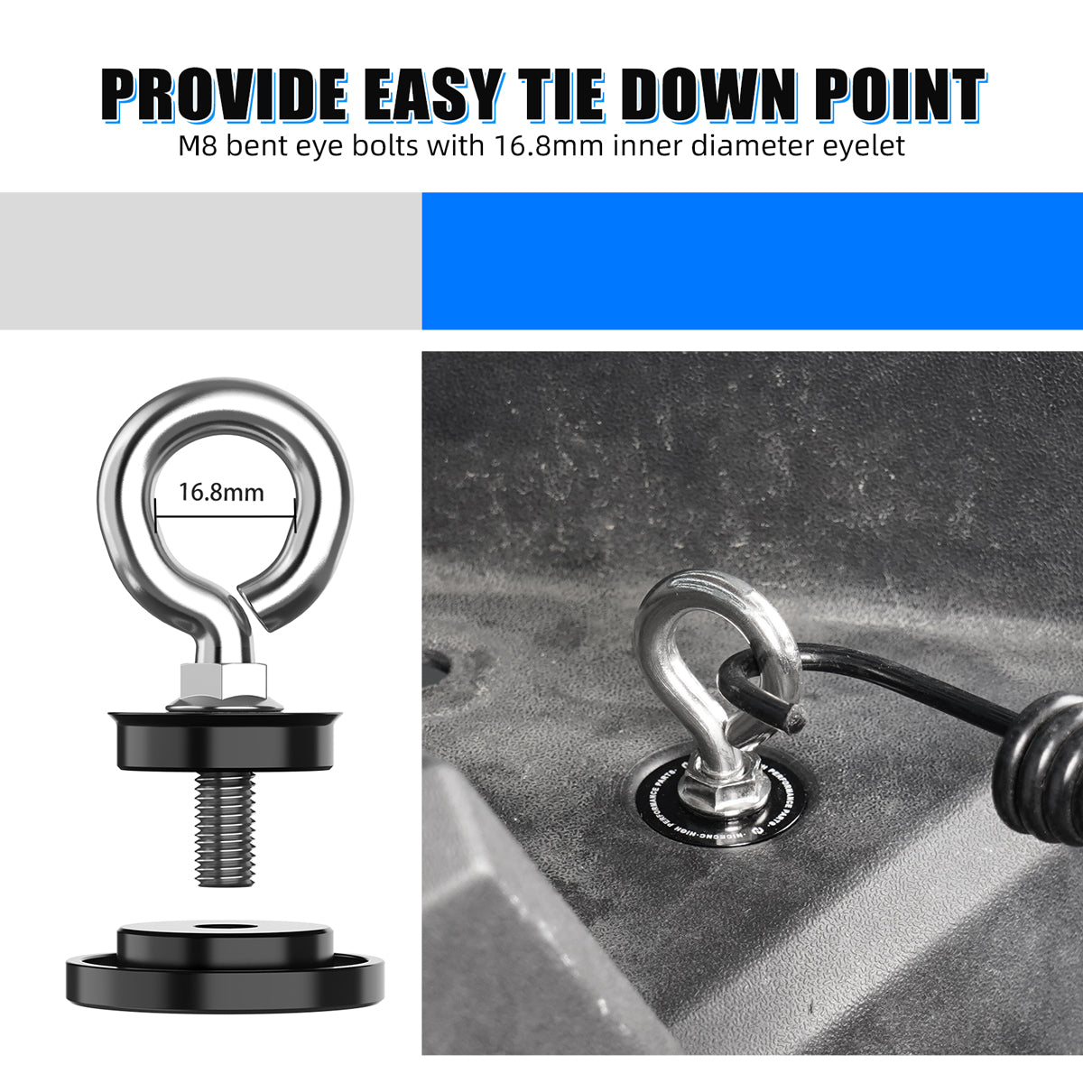 Convenient Tie Down Point - Equipped with a zinc-plated M8 bent eye bolts featuring a hex nuts and the 16.8mm inner diameter eyelet provides an easy tie down point.
