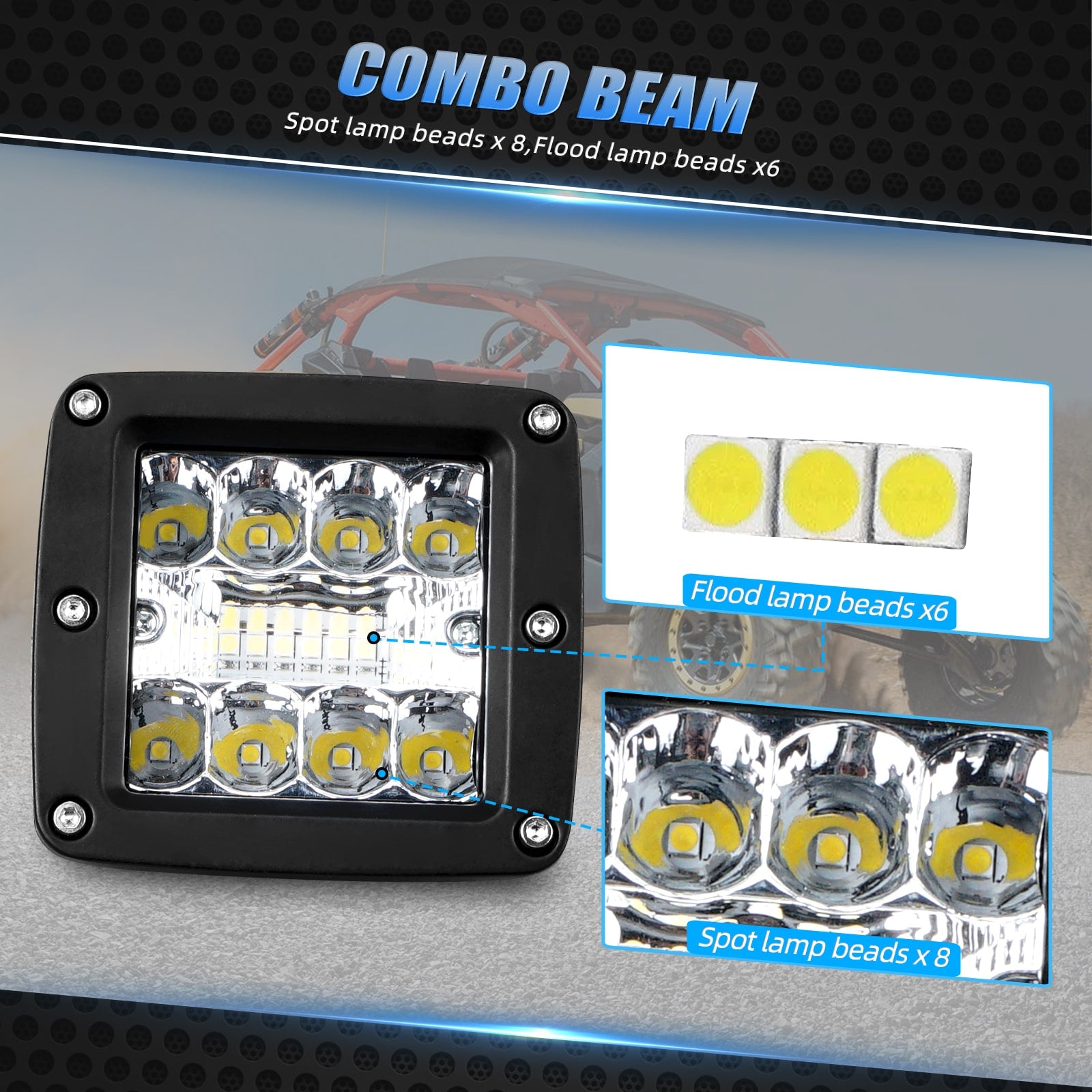 - Illuminate Your Surroundings - Two 20W 3-inch combo beam led light pods with IP67 waterproof rating provide ample brightness, ensuring clear visibility in all weather conditions. Perfect for illuminating the rear area and backup, prevent collisions.