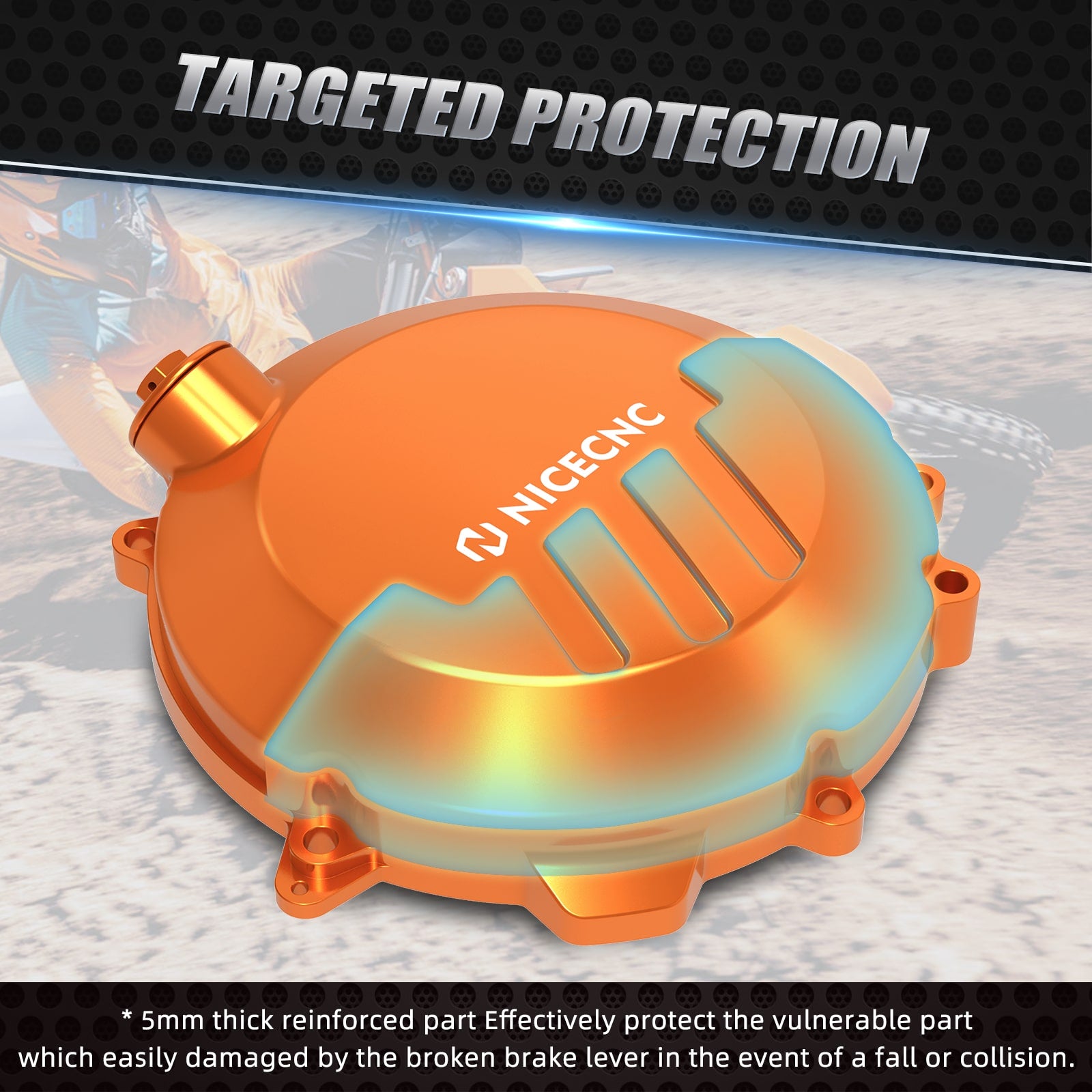 Our reinforced clutch cover is thickened to 5MM in vulnerable areas, twice the thickness than 2.5MM factory parts and making it more sturdy to resist heavier impact on any challenging terrains. No need to worry about clutch cover being easily damaged by the broken brake pedal when falling or colliding in the jungle.