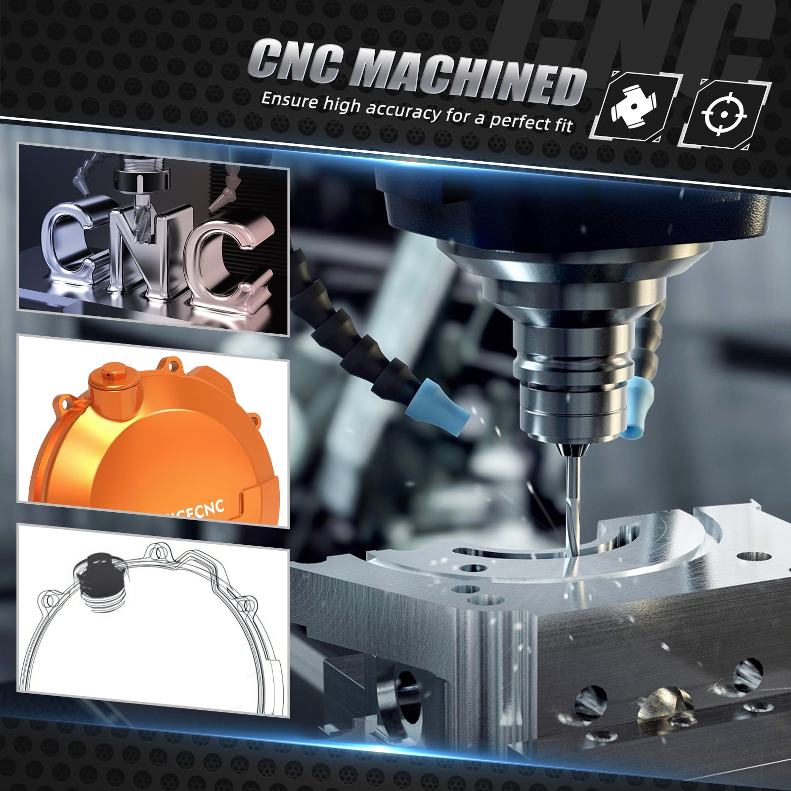 - CNC Machined-Machined by the latest-generation CNC technology that ensures high accuracy for a perfect fit.
