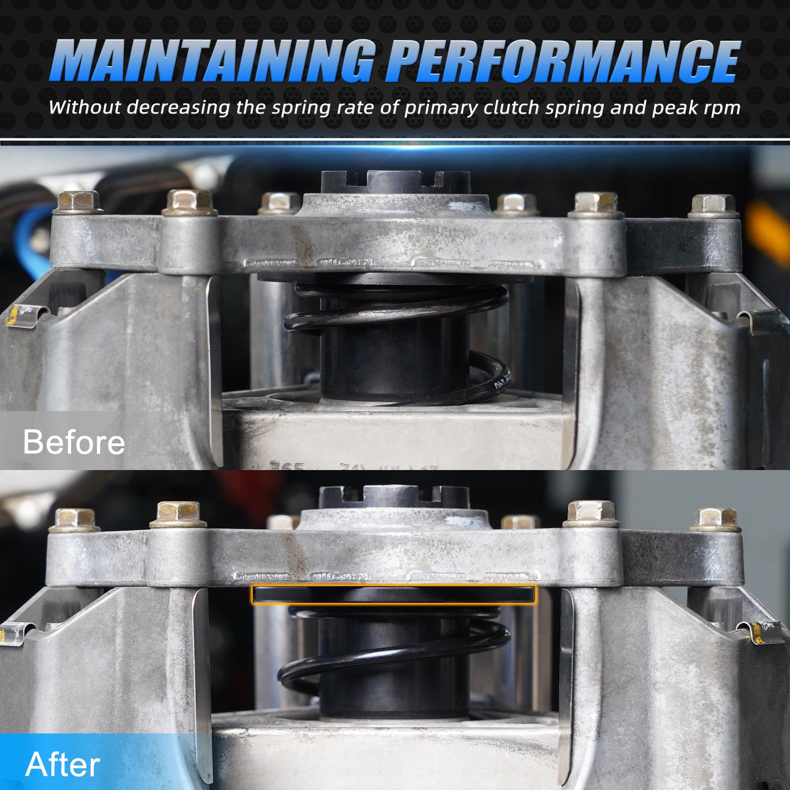 - Extended Lifespan - Our primary clutch limit washers thicker than the original primary clutch limit washers, which can extend the working life of the belt and clutch assembly, this happens because the belt doesn't extend as far out of the primary clutch, providing more surface area for grip, while this might slightly decrease top speed compared to the factory setting.