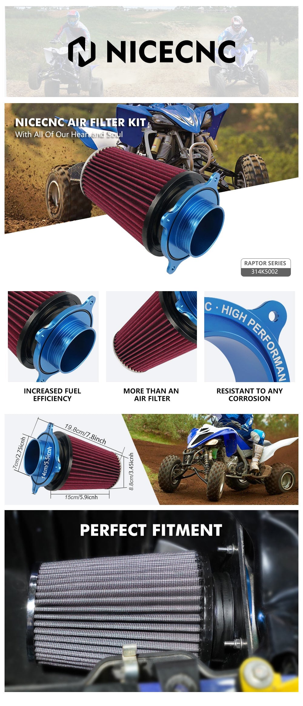 Air Filter Intake With Holder Adapter For Yamaha Raptor 700 2006-2024